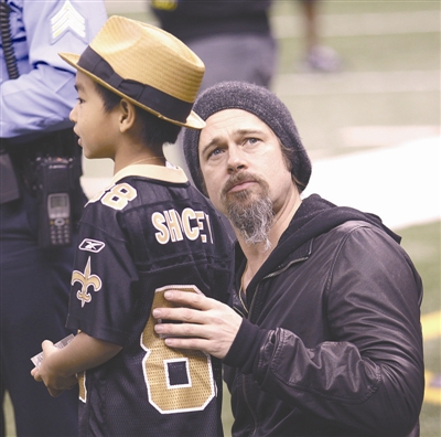 美國當?shù)貢r間1月16日,布拉德·皮特帶著養(yǎng)子馬多克斯和導(dǎo)演斯派克·李現(xiàn)身美式橄欖球賽場,在比賽間隙,皮特利用明星身份帶著兒子與偶像隊員來了個親密接觸,滿足了球迷兒子的小心愿。