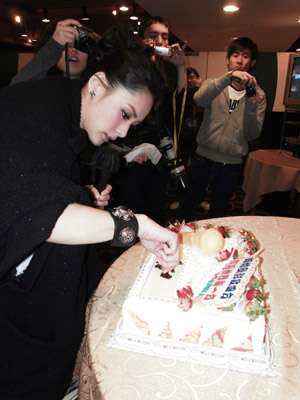 粉絲們得悉阿嬌近日忙于拍戲及籌備新專輯,特意送上寫有祝福阿嬌歌影事業(yè)順利的蛋糕。但粉絲又得知阿嬌曾學做蛋糕,對蛋糕要求甚高,故特別設(shè)計了一個既可表達粉絲們心意,又能讓阿嬌可即場簽名及自由創(chuàng)作,使兩者心思合二為一的精致蛋糕。