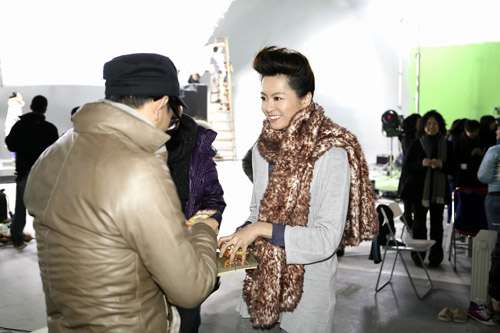 中新網(wǎng)2月23日電 新年期間休息了好幾天的梁詠琪,上周五復(fù)工,并為日本某護膚品牌拍攝新一輯電視廣告。雖然拍攝當(dāng)日正值本港今年入冬以來最冷的一天,但攝氏八度的低溫并沒減退梁詠琪的熱情,頭頂雞冠頭的她在片場大派紅包給工作人員,祝愿各人虎年行好運,令大家興奮不已。