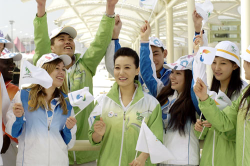 在拍攝現(xiàn)場,幾個留學(xué)生也格外顯眼,他們有從非洲來的,有從歐美來的,都是在上海學(xué)習(xí)漢語的學(xué)生。由于在中國的時間比較短,雖然語言方面可以溝通,但拍攝過程中還是遇到了很多困難,而譚晶又擔(dān)當(dāng)了老師的角色,拍攝之余耐心給大家講解中國文化,還教大家演唱歌曲《世界》。“世博會是全世界人民共同的節(jié)日,這些外國友人能加入到志愿者行列中來,我覺得對我們的志愿服務(wù)是一種鼓舞,希望更多的人加入到這個隊伍中來!