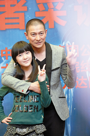 自電影《長(zhǎng)江七號(hào)》之后,童星徐嬌認(rèn)片中的爸爸周星馳為干爸爸。這次在《未來警察》中,徐嬌又演劉德華的女兒,昨天的發(fā)布會(huì)上,徐嬌對(duì)劉德華也是一口一個(gè)“劉老爸”,非常親熱。