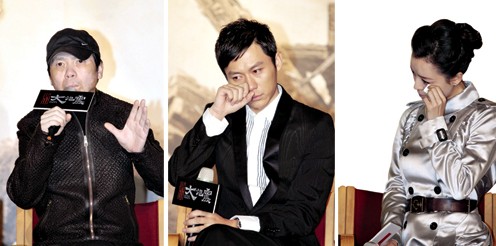 馮小剛的新片《唐山大地震》昨天在北京召開發(fā)布會(huì)公布了首款預(yù)告片。而對(duì)于剛剛發(fā)生的玉樹地震,也許劇組想要避免借玉樹炒作的嫌疑,在表示將向玉樹捐款20萬(wàn)之后,就不愿談?wù)摳。在章子怡的“詐捐門”之后,馮小剛也吸取了教訓(xùn),表示捐款“一定要開發(fā)票”!