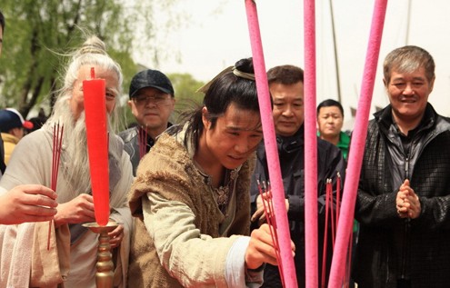 昨天上午,由博納影業(yè)、本山傳媒和延平工作室共同出品的賀歲新片《大笑江湖》在無錫影視基地正式開拍。博納影業(yè)總裁于冬和導(dǎo)演朱延平、武術(shù)指導(dǎo)程小東攜主演趙本山、小沈陽、程野出席了開機(jī)拜神儀式。隨著幾位主演正式投入拍攝,趙本山和小沈陽在片中的全新形象也正式曝光。扮演小鞋匠的小沈陽的扮相一改《三槍拍案驚奇》中的艷麗形象,變身古代帥氣熟男。據(jù)悉,小沈陽這次不只耍嘴皮子功夫,還要亮出自己二人轉(zhuǎn)底子的“真活兒”,拍攝大量的動(dòng)作戲。