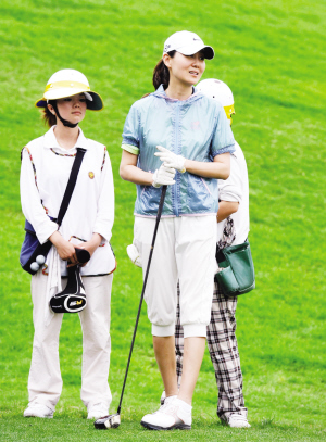 而潘蔚上場打球的時候,每一個招式都很專業(yè),一旁的球童告訴記者:“潘蔚是所有來的女明星中打得最好的,有時候比孫楠還打得好!碑斢浾邔㈢R頭對準潘蔚時,身旁的孫楠立刻將手遮住潘蔚的臉,不愿意妻子曝光在媒體面前。