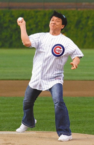 中新網(wǎng)5月27日電 成龍昨日身穿棒球衫,出現(xiàn)在芝加哥小熊隊(duì)的主場(chǎng),擔(dān)任小熊隊(duì)主場(chǎng)對(duì)道奇隊(duì)的首戰(zhàn)開(kāi)球貴賓,成龍大哥雖然會(huì)踢足球和打武術(shù),但投球姿勢(shì)怪異,最后棒球更提早落地,十分搞笑。