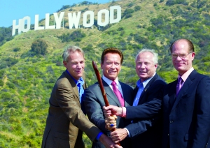 美國時間4月26日,加州州長施瓦辛格專門在招牌所在的山腳下演講,他說:“好萊塢招牌是夢想、機(jī)遇和希望的符號,它矗立在那里歡迎著一代又一代的夢想者、藝術(shù)家,還有奧地利的健美運動員來到這里。”他還在講話中感謝了捐助者們,他們包括美國電影藝術(shù)與科學(xué)學(xué)院、CBS電視臺、NBC環(huán)球公司、索尼影業(yè)、20世紀(jì)?怂构尽⑷A納兄弟公司、時代華納公司、斯皮爾伯格、湯姆·漢克斯夫婦等等。