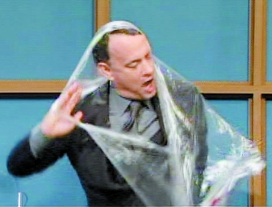 奧斯卡影帝湯姆·漢克斯5月16日在紐約做客《周六夜現(xiàn)場》節(jié)目。在節(jié)目中,湯姆·漢克斯被主持人威爾·法瑞爾惡搞,被套上了一個超大塑料袋,幾次掙扎后,這位影帝的俏臉都險些變形,最終還是撕破袋子獲釋。但惡搞只是節(jié)目的一部分,等湯姆·漢克斯平靜之后,他還在節(jié)目中與女星安妮·海瑟薇共同表演薩克斯。其實(shí)上電視,只是漢克斯忙里偷閑的一次放松,近期他的主要任務(wù)是為新片《天使與魔鬼》作宣傳,該片是《達(dá)·芬奇密碼》續(xù)集,在片中他依舊飾演哈佛教授羅伯特·朗頓。