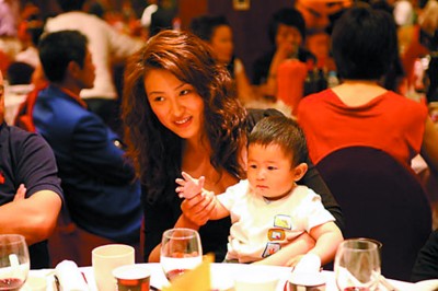 由于晚會(huì)當(dāng)天安排了晚宴,近百位明星藝人將晚會(huì)現(xiàn)場(chǎng)塞得滿滿當(dāng)當(dāng),加上媒體的攝像機(jī),要在現(xiàn)場(chǎng)走動(dòng)頗有幾分難度。但坐在主桌的王志文卻頻頻向隔壁桌示意,記者追隨過(guò)去,意外發(fā)現(xiàn)了王志文的太太陳堅(jiān)紅手里抱著一個(gè)一歲不到的孩子。經(jīng)證實(shí),這個(gè)9個(gè)月大的孩子正是兩人的愛情結(jié)晶。與之前相比,孩子長(zhǎng)大了不少,一雙小眼睛更是像極了父親王志文。只見小朋友面對(duì)記者的鏡頭并不見半點(diǎn)緊張,大有父親般的明星派頭,不僅任由拍攝,還時(shí)不時(shí)拿起手中的塑料玩具,和媽媽逗趣玩耍。而一頭中長(zhǎng)燙發(fā)的陳堅(jiān)紅依舊年輕漂亮,皮膚白皙,看到記者的鏡頭,陳堅(jiān)紅也沒有表示抗拒,只是專心地和孩子玩耍。