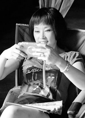 記者見到劉曉慶時,她正斜坐在椅子上玩PSP,上身穿一件深藍色蓬蓬袖T恤,下身穿一條黑色短裙,腳蹬坡跟涼鞋,給人青春靚麗的感覺!澳矚g玩益智類游戲?”見劉曉慶在玩一款益智類游戲,記者問道。“我什么都玩,各種類型的,就是小P里游戲不多!眲詰c邊盯著PSP的屏幕,邊答道!靶是什么?”記者不解地問道。