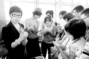 昨天,2009中國播音主持“金話筒獎”新聞發(fā)布會在北京電視臺舉行。作為評委的央視新聞中心播音部副主任李瑞英無疑是活動中最受追捧的人。