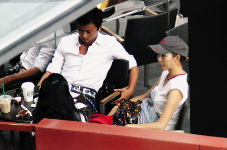 當(dāng)天蔡少芬頭戴一頂棒球帽,白T恤配長裙的裝扮令其看上去非常有活力。或許是由于愛情的滋潤,雖然當(dāng)天蔡少芬并沒有化妝,不過依然顯得非常漂亮。他們走進(jìn)一家咖啡廳,落座后張晉侃侃而談,蔡少芬則一臉愛意地注視他。說到高興時,張晉抬起左手指指點點,蔡少芬馬上用手握住老公的胳膊,臉上滿是關(guān)心的表情,兩人看上去就像熱戀的情侶般默契十足,恩愛非常。