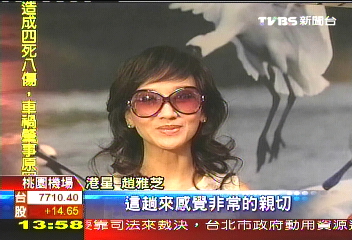 據(jù)臺(tái)灣TVBS報(bào)道,大墨鏡、白洋裝,港星趙雅芝跟著丈夫,一塊搭機(jī)抵達(dá)臺(tái)灣。趙雅芝表示:“很高興又來到臺(tái)灣,跟大家見面!