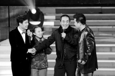 眼看唱主題歌的事要黃了,小沈陽和毛毛終于使出最后一個(gè)殺手锏:請出自己的舅姥爺,這舅姥爺并不是大病初愈的趙本山,正是《三槍拍案驚奇》的導(dǎo)演張藝謀。幾乎“絕跡”綜藝類節(jié)目,這次也算是為新片獻(xiàn)出了綜藝“處女秀”。至于為什么成了小沈陽和毛毛的舅姥爺,張藝謀的解釋是,我和丫蛋的爺爺(指趙本山)是好朋友啊!有了舅姥爺?shù)闹С,小沈陽和毛毛接下來的表演更賣力了,他們和《星光大道》的選手李玉剛等,進(jìn)行了一系列的PK,可最后的結(jié)果還是不分伯仲。看著這兄妹倆不停的鬧騰,張藝謀最后發(fā)話了:“小沈陽,你也別在人家《星光大道》上胡鬧了,就跟我走吧,不看僧面看佛面,看在丫蛋她爺爺?shù)拿嫔,《三槍拍案驚奇》的主題歌,就讓你唱吧!”