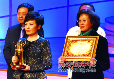 前晚,2009中國(guó)播音主持“金話筒獎(jiǎng)”頒獎(jiǎng)盛典在北京電視臺(tái)大劇院隆重舉行。來(lái)自全國(guó)各地的百余名播音員、主持人歡聚一堂,共同慶!敖鹪捦勃(jiǎng)”的又一次精彩亮相。在此次評(píng)選中,中央電視臺(tái)張泉靈、楊銳、董浩等10人獲得電視播音員主持人獎(jiǎng);中央電視臺(tái)李修平、張宏民主持的《新聞聯(lián)播》、四川廣播電視集團(tuán)寧遠(yuǎn)主持的《汶川地震特別報(bào)道》等10件作品獲得電視播音主持作品獎(jiǎng);中央人民廣播電臺(tái)郭靜、梁悅主持的2008年5月12日《汶川緊急救援》(開篇)、寧波人民廣播電臺(tái)何謹(jǐn)主持的《一位絕癥母親的奧運(yùn)夢(mèng)想》等10件作品獲得廣播播音主持作品獎(jiǎng)。此外,已故中央電視臺(tái)著名播音員羅京被授予了“金話筒獎(jiǎng)”終身成就榮譽(yù),他的同班同學(xué)兼同事李瑞英替羅京領(lǐng)取了這項(xiàng)殊榮。
