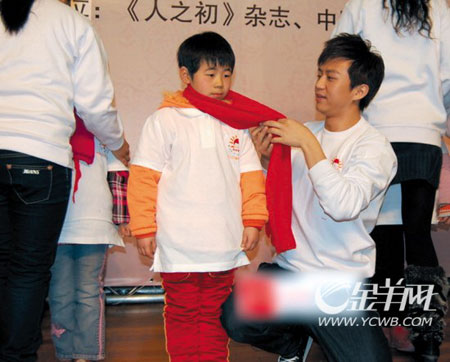鄧超以形象代言人的身份出席了陽光女孩基金“幸福圍巾溫暖接力”愛心行動啟動儀式,并代表話劇《翠花》劇組向“陽光女孩”基金捐款10萬元人民幣。談起愛心圍脖,鄧超直言女友孫儷不會編織圍巾,但他笑言:“為了陽光女孩,我回去會讓她學(xué)織!碧鹈鄣谋砬榇蚱屏藘扇朔质值膫餮浴