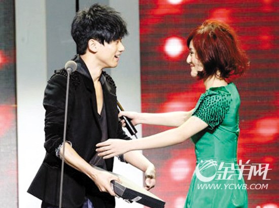 “我覺得我自己是一個非常幸運的人,我發(fā)行了很多音樂作品,有我的家人、我的朋友、我的同事,還有我的朋友給我的支持和喜愛,我也可以好好照顧娜娜。我想告訴大家,我們在一起,很幸福。謝謝大家給我們的祝福,也希望大家新年快樂!謝謝。”這是張杰在臺上的領(lǐng)獎詞。主持人之一的汪涵在旁邊煽情地補充:“我想張杰一直在醞釀自己的情緒,一直在醞釀,終于說出了剛才在后臺娜娜特別想說的話!睕]想到謝娜卻一點都沒有不好意思地接口:“對,我謝謝大家,也祝福我的男朋友張杰!敝螅c張杰心有默契地當眾玩“抱抱”,緊擁了數(shù)分鐘,臺下一片嘩然。在活動即將結(jié)束時,謝娜邊走邊抱怨:“穿高跟鞋走得好慢!蓖艉⒓创蛉ぃ骸氨恍腋M侠壑,稍微慢一點!绷硪晃恢鞒秩撕钆遽步釉挘骸皩,有可能快要當新娘子了。”
