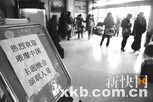 央視少兒頻道表示,他們從未與該組委會有過合作,更談不上播出其節(jié)目。被忽悠上“央視少兒春晚”的三百余名孩子只得在各領隊老師的帶領下黯然離開。圖為某個代表隊的幾十名兒童帶著沮喪在賓館大堂等待回家。 (新快報)