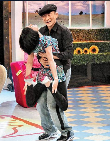 小S昨還向華仔邀舞,他不愿就范,她只好使出撒手锏,飛撲、鉆胯下兼剪刀腳夾住華仔,他一把抱住她,小S興奮說:“今天節(jié)目就是要傳達劉德華力道不錯!