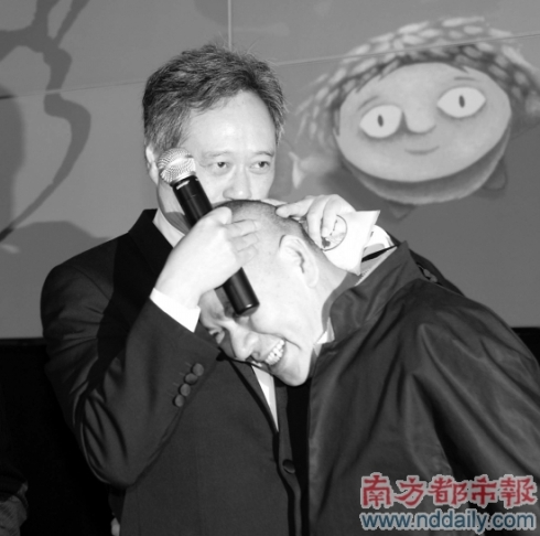 北京時(shí)間昨日凌晨,李安和蔡明亮在戛納的“臺(tái)灣之夜”上相遇。前者的新片《制造伍德斯托克》受到評(píng)論圍剿,同時(shí)后者也被質(zhì)疑在臺(tái)灣沒(méi)了市場(chǎng)才轉(zhuǎn)投國(guó)際電影。這對(duì)讓外界打起問(wèn)號(hào)的大導(dǎo)演一見(jiàn)面就“惺惺相惜”。李安在蔡明亮的光頭上親了一下,蔡明亮也立刻回吻了李安,讓現(xiàn)場(chǎng)氣氛相當(dāng)活躍。