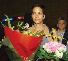 昨晚6點(diǎn)半,有“黑珍珠”之稱的好萊塢影后哈里·貝瑞“輕裝”抵滬參加上海國(guó)際電影節(jié)。自己背個(gè)休閑包,只帶一名助手,甚至沒(méi)有保安——此番來(lái)滬的“黑珍珠”低調(diào)至極。不過(guò)藍(lán)色牛仔褲、米色皮夾克的休閑打扮,難掩“邦女郎”的非凡氣勢(shì)。親民的“黑珍珠”用一個(gè)簡(jiǎn)單的回眸微笑,就謀殺了眾多媒體的無(wú)數(shù)菲林。