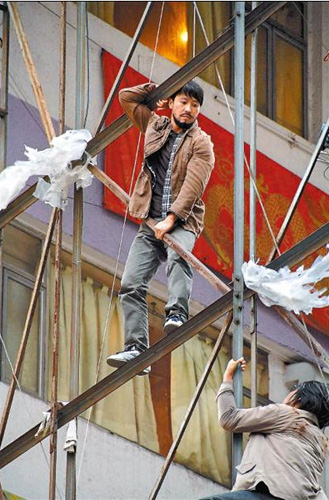 臺(tái)灣媒體消息,黎明前天在銅鑼灣鬧市區(qū)拍攝一場(chǎng)驚險(xiǎn)追逐的戲,現(xiàn)場(chǎng)只見黎明在5層樓高的鷹架上爬來爬去,看得叫人為他捏把冷汗。