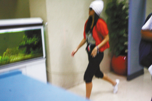 晚9:15,“來(lái)了!來(lái)了!”安檢人員對(duì)講機(jī)里傳來(lái)前方隨時(shí)更新的信息,只見章子怡在一位胡須男助手的引導(dǎo)下,面露微笑、輕松自如地走過安檢門,白色線帽和黑超墨鏡很是打眼。此時(shí),本報(bào)攝影記者卻被劇組工作人員強(qiáng)行按住相機(jī)。旁邊的地面服務(wù)人員看到真人版“國(guó)際章”不禁感嘆道:“好瘦哦!皮膚還白耶!”一男生說:“恁個(gè)熱,還戴恁個(gè)厚的帽子!