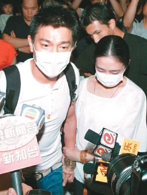 朱麗倩前天在機(jī)場被拍到時(shí),似用手護(hù)著肚子,引發(fā)懷孕聯(lián)想,陳嵐說:“那是媒體猜測,我們都沒聽說!笔欠駮诎偃諆(nèi)完婚?陳嵐說,朱父喪事剛辦完,劉德華和朱麗倩還陷在悲傷情緒,只能簡訊安慰他們不要太傷心,沒談到其它事情。