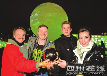 頒獎儀式開始前,頒獎臺上的大屏幕赫然映著一棵干枯的大樹。音樂響起,中國著名演員李冰冰手捧一個“地球”緩緩走向頒獎臺,然后輕輕將“地球”放下。她的舉動告訴人們,地球是人類的家園,需要人類共同呵護。