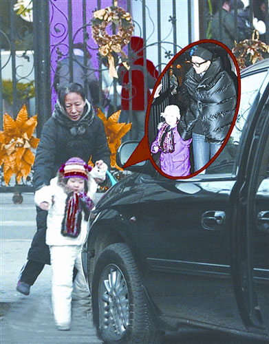 近日,記者來(lái)到位于INTEL大廈的章子男居所附近,恰巧趕上章子怡之前使用的那輛黑色道奇駛出大廈,記者便跟了上去。該車(chē)最終來(lái)到位于望京的某小學(xué)門(mén)口,而后一中年女子迅速下車(chē),站在門(mén)口開(kāi)始向校園內(nèi)觀(guān)望。沒(méi)過(guò)多久,一個(gè)穿著一襲白衣的小女孩向中年女子跑了過(guò)來(lái),該女孩就是章子男的女兒。中年女子未作停留,迅速將女孩領(lǐng)到了車(chē)內(nèi),隨后一溜煙離開(kāi)。