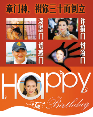 前天是2月9日,章子怡31歲生日,繼“潑墨門”、“詐捐門”、“誘惑門”(周潤發(fā)稱出演《臥虎藏龍》時曾受到某女星誘惑,網(wǎng)友紛紛將懷疑對象鎖定章子怡)之后,如今又誕生了一個新的八卦“門”———“封湯門”:導(dǎo)演陸川微博發(fā)文引網(wǎng)友熱議,章子怡被指疑似封殺湯唯幕后黑手。