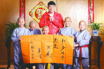 早前劉德華為拍電影《新少林寺》學(xué)了一套七星拳,春節(jié)期間,他和一班少林小武僧邊練拳法邊寫大字,用“虎虎生威”4字向影迷拜年!缎律倭炙隆啡ツ甑组_(kāi)拍后,經(jīng)歷了一場(chǎng)突如其來(lái)的風(fēng)雪,由于當(dāng)天開(kāi)不了工,華仔在現(xiàn)場(chǎng)跟小武僧們聊天,培養(yǎng)出了感情。這次拍照,小武僧們?nèi)挤e極響應(yīng)。(唐雪薇)