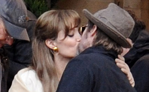 臺灣《蘋果日報》消息,朱莉前天飛到巴黎拍攝新片《觀光客》(The Tourist),皮特帶著女兒夏蘿和莎哈拉去探班,趁休息空檔耳鬢廝磨,還入境隨俗地來個熱烈“法式接吻”,非常高調(diào)。英國媒體《每日郵報》揶揄,在浪漫的花都巴黎看到情侶接吻一點都不稀奇,但目擊朱莉皮特夫婦的擁吻則讓人吃驚。