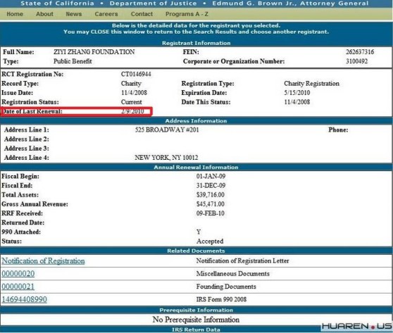 五:章子怡解釋說(shuō),基金會(huì)是在戛納籌款前兩天在美國(guó)加州注冊(cè)的,并沒(méi)有網(wǎng)友指控的“先籌款,后注冊(cè)”。網(wǎng)友發(fā)現(xiàn)的紐約地址僅是一個(gè)郵寄地址,是為聯(lián)絡(luò)方便補(bǔ)加的。基金會(huì)從未失效或過(guò)期,每一筆款項(xiàng)均直接進(jìn)入基金會(huì)在美國(guó)銀行開戶的活期帳號(hào),從未取過(guò)一分錢,連注冊(cè)費(fèi)等開支均由她個(gè)人支付。
