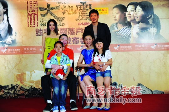 昨日,即將于7月22日在內(nèi)地、香港、臺(tái)灣同步上映的《唐山大地震》在搜狐網(wǎng)開通了電影官方網(wǎng)站,導(dǎo)演馮小剛攜主演徐帆、張國(guó)強(qiáng)等出席發(fā)布會(huì)與網(wǎng)友一同分享了他們關(guān)于30年前的記憶,并首度向外界公布了影片中“張國(guó)強(qiáng)、徐帆一家”的全家福照片。而在隨后的采訪中,馮小剛則否認(rèn)了徐帆因?yàn)槭亲约浩拮硬诺靡猿鲅荨洞蟮卣稹返膫髀劊靶旆乃皆谀莾簲[著,她撐起了這部電影的魂。”同時(shí),對(duì)于影片的票房,馮小剛再次放出豪言,“誰不服,就和《大地震》同天上映!”