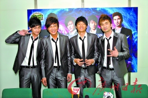 日前曾做客《大洋星閃亮》的國內(nèi)首支男模新聲——風云組合,5月18日晚又帶著新專輯《風云》參加了廣東電臺音樂之聲為其舉行的歌迷會,現(xiàn)場演繹了《你愛我嗎》、《TOP STAR》等多首不同風格的歌曲,展示了自己T臺以外的舞臺魅力。