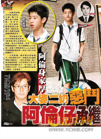 雖然現(xiàn)階段阿倫極力避免讓兒子曝光,但據(jù)知他眼見愛子外形討好,又遺傳了自己的歌唱天分,現(xiàn)已有七級鋼琴的造詣,故有意帶兒子入行。據(jù)唱片公司職員爆料:“阿倫整天在高層面前提起自己的兒子,說他長得帥唱歌又好!逼鋵(shí),除了為兒子鋪好路,身家豐厚的阿倫也在積極為愛子的生活作打算。雖然阿倫大部分財(cái)產(chǎn)都由發(fā)妻莎莉掌管,但真正歸莎莉所有的物業(yè)只有約值3000萬元,而保守估計(jì)阿倫坐擁逾5億資產(chǎn)。為防他日“兩房”爭寵,同時(shí)也為兒子的將來著想,據(jù)知阿倫早就打算將資產(chǎn)轉(zhuǎn)到兒子名下!岸獭盬endy雖然現(xiàn)在僅有兩個房子在手,但作為5億家產(chǎn)繼承人之母,下半世當(dāng)然不用愁!(阿文)