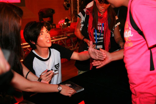 在最后的簽售環(huán)節(jié),等待已久的歌迷迫不及待地想要簽名,現(xiàn)場秩序也一度混亂。經(jīng)過工作人員的協(xié)調(diào)后,大家才井然有序地排隊(duì)簽售。