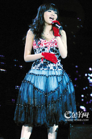 “快女”十強(qiáng)依次上臺(tái)演唱自己的拿手曲目,包括江映蓉的《一個(gè)人跳舞》、李霄云的《沉淀》、黃英的《映山紅》、郁可唯的《如果云知道》、劉惜君的《有一天我會(huì)》以及李媛希的《LOVE》等。郁可唯、李霄云、黃英等的演出都保持水準(zhǔn),而領(lǐng)先推出個(gè)人專輯的曾軼可則用招牌“綿羊音”唱起了專輯里的新歌《電車計(jì)劃》和《新的家》。曾軼可顯然自得其樂,頗為放松,在舞臺(tái)上彈唱之余,還有一些舞蹈動(dòng)作。但除了臺(tái)下一個(gè)小小方陣的歌迷舉著“專輯大賣”的牌子大聲吶喊外,觀眾應(yīng)聲寥寥。前來(lái)“圓場(chǎng)”的主持人郭彪和吉杰則對(duì)曾軼可說(shuō):“你放心,你的專輯最少有兩張的銷量,因?yàn)槲覀儌z都預(yù)定了!币字ツ