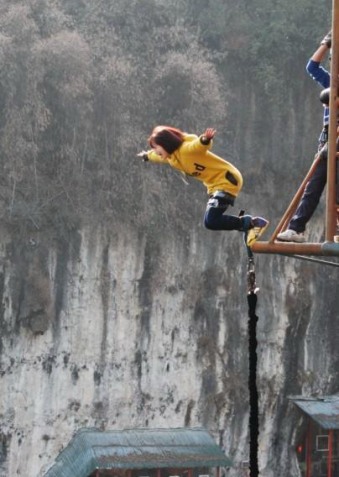 譚志玲在所有的選手當(dāng)中,一向以膽小著稱,認(rèn)識(shí)她的人都覺得她是一個(gè)文靜、可愛、膽子又非常小的女生。但是在“與JAY同型”的選秀活動(dòng)中她做出了驚人的決定,挑戰(zhàn)自己膽小的性格,去冒險(xiǎn)蹦極。屬于極限運(yùn)動(dòng)的蹦極,敢于挑戰(zhàn)它的人都在少數(shù),像譚志玲這樣?jì)尚〉呐ヌ魬?zhàn)更是少之又少。而她這個(gè)勇敢的決定也讓她體驗(yàn)了一把勇敢者的刺激和高空墜落的快樂。在她的博客中她這樣寫道:“我不斷努力的去追逐自己的夢想!不管路途中遇到多少挫折都要堅(jiān)強(qiáng)的面對與克服!當(dāng)你最后成功的那一刻那你就是最“型”的!就像蹦極一樣!很多人都想讓自己成為很勇敢的人,去做很多人不敢嘗試的事!可是但真的面臨的時(shí)候心里又會(huì)打退堂鼓!但其實(shí),當(dāng)你站上蹦極臺(tái)你已經(jīng)不能后退了,如果你選擇放棄那你永遠(yuǎn)就只會(huì)原地踏步!你不去挑戰(zhàn)你又怎么知道自己還可以走多遠(yuǎn)呢?”