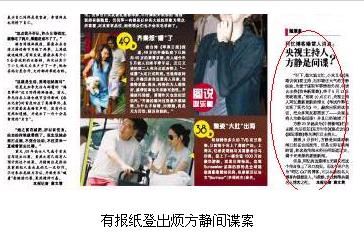 昨天下午,各大網(wǎng)站都開始轉(zhuǎn)發(fā)《東方衛(wèi)報》發(fā)表的一條小消息。消息稱,“央視前主持人、北大教授阿憶在博客中爆驚人消息,稱央視主持人方靜是‘間諜’,已于5月12日被捕!
