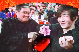 獲得語言類一等獎的本山大叔在元宵晚會上依然是只露面不表演。去年元宵晚會上,小沈陽一人登臺獨唱《大!,不僅現(xiàn)場唱得趙本山淚水漣漣,也讓大家對師徒二人之間的情誼留下深刻印象。此前有消息稱今年元宵晚會小沈陽和王小利將表演二人轉(zhuǎn)絕活,但最終小沈陽、王小利及趙本山首位歌手徒弟湯潮合唱了一首歌曲《美了美了》,以此“慶!钡锚勚蟮暮眯那。