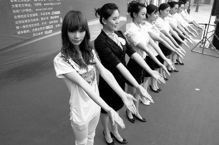 在昨日的海選現(xiàn)場,記者發(fā)現(xiàn)有不少熟悉的面孔,原來,有的女孩面對第一天的失敗很不甘心,所以昨日再次“披掛上陣”。21歲的小林和小陸就是其中的兩位,小陸說,看到網(wǎng)上公布的名單沒有自己和小林,兩個好姐妹一起又把目測的過程走了一遍,想來想去,小陸懷疑可能是背不夠直才被淘汰。