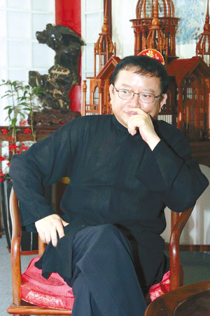 記者問王剛收藏品占他全部家產(chǎn)的多少,沒想到王剛停頓一下后回答:“百分之七十吧。我家除了一件沙發(fā),全部是古董。”說到古家具,王剛興致很高,“我睡的那張雕花架子床有180年歷史。屋里還有一張羅漢床,三面有圍擋,沒想到是為兒子買的。兒子不會走路時在上面玩最安全。圍擋上還刻著房子、樹木等浮雕,兒子特喜歡!