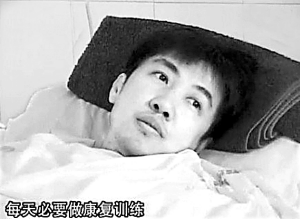 記者走進(jìn)病房時,鄢頗躺在病床上,李小冉就坐在一邊。鄢頗看上去雖然很虛弱,但是精神還不錯,還不時和李小冉有說有笑。他給記者看了右臂和右腿打的石膏:“打著石膏的三處都是有骨折的!薄昂笃谛枰畈欢喟肽甑揭荒甑拿刻毂匾目祻(fù)訓(xùn)練。”說起鄢頗的傷情,李小冉忍不住再次落淚:“愛一個人就是,你會覺得雖然很累,但是你心里是很開心的,然后看著他一天天好起來,你會覺得特別踏實!