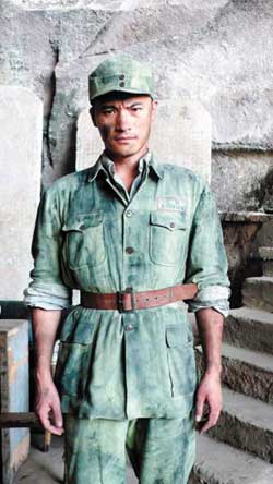 在電影版《紅日》中,著名演員楊在葆演繹的解放軍連長石東根形象深入人心。這是一個用戰(zhàn)刀挑著敵人的鋼盔,縱馬揚(yáng)鞭自在豪情的“不怕死”的鐵漢英雄。這一經(jīng)典角色對青年演員的要求頗高,既要塑造人物扎實質(zhì)樸,又要有市場號召力。最終,從眾多一線小生中,耿樂脫穎而出,與李幼斌、尤勇組成中青年《紅日》“夢幻組合”。該劇尚未拍攝,播出權(quán)就被各大電視臺一搶而空。
