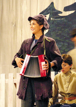 由嚴(yán)歌苓的著名小說《一個(gè)女人的史詩》改編的同名電視劇正在安徽蕪湖熱拍,這也是趙薇和劉燁相識(shí)12年來首度演對(duì)手戲。第一次熒屏合作就演了一對(duì)一生一世的夫妻,兩人皆笑言“緣分不淺”。該劇由第五代導(dǎo)演夏鋼操刀,目前已拍攝過半。前天,記者到劇組探班時(shí)正看到久未露面的趙薇頭戴軍帽,衣衫襤褸,以流浪兒的樣子出現(xiàn)———原來,她正在排練“戲中戲”前蘇聯(lián)話劇《以革命的名義》。
