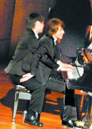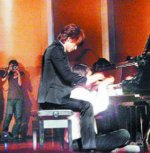 周董彈琴說愛的《不能說的秘密》大紅,言承旭在新戲《星心的淚光》也化身“琴圣”,可惜他琴藝不佳,須由替身“胯下”代彈,兩人十分尷尬,頻頻笑場,變成“男體交纏”的詭異畫面,引起臺(tái)下從外地趕來捧場的師奶粉絲兼臨時(shí)演員陣陣驚呼,他拍完后也直呼有趣,“我本來就沒鋼琴基礎(chǔ),為拍演唱會(huì)表演已苦練了劇情需要的幾首曲子,但當(dāng)天拍攝的曲目太難,因此讓替‘手’上場!