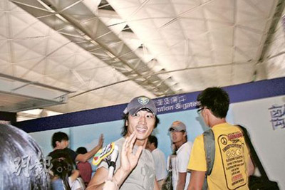 韓星宋承憲離港。香港《明報(bào)》圖。
