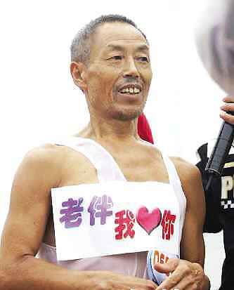 最溫情選手:重慶羅大爺借參加比賽向戀人示愛的選手很多,但沒有一個(gè)比來自四川重慶的羅大爺更讓人震撼。他身貼“老伴我愛你”的字樣參與《智勇大沖關(guān)》,面對(duì)鏡頭對(duì)電視機(jī)前的老伴喊道:“老伴,我愛你!辟|(zhì)樸而真摯的語言贏得了現(xiàn)場(chǎng)觀眾熱烈的掌聲,也感動(dòng)了電視機(jī)前的觀眾,被一致推選為最令人感動(dòng)的溫情選手。 (易哲)