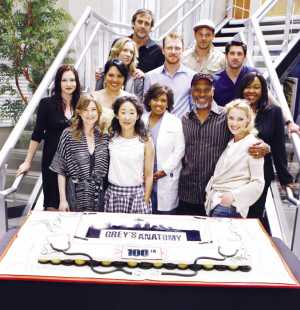 描寫醫(yī)務(wù)人員生活的熱門美劇《實習(xí)醫(yī)生格蕾》日前完成了第100集的拍攝工作。劇組在洛杉磯的片場舉辦了一個慶祝派對,并特意準(zhǔn)備了一個帶有“聽診器”、 “手術(shù)刀”等圖案的大蛋糕。包括帕特里克·德姆西、桑德拉·歐、凱瑟琳·海格爾(前排右一)等主演均到場留下了“全家!薄